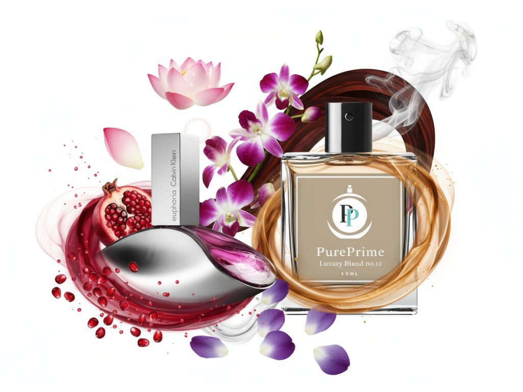 Dámsky parfum No.12 - PurePrime je inšpirovaný ikonickou vôňou Calvin Klein Euphoria. Táto orientálno-kvetinová kompozícia spája exotické ovocie, opulentné kvety a hrejivé drevité tóny, čím vytvára neodolateľnú a zvodnú vôňu.