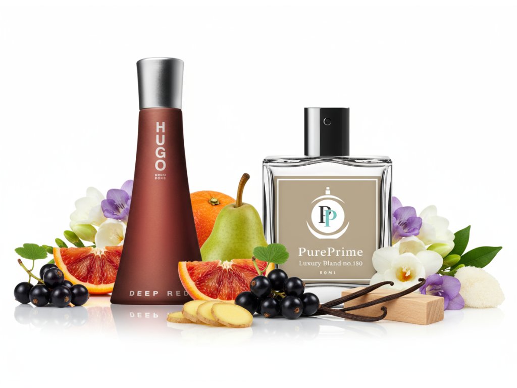 Dámsky parfum No.180 - PurePrime je alternatívou k elegantnej a zvodnej vôni Hugo Boss Deep Red. Teplá kombinácia vanilky, drevitých tónov a kvetinových akordov dodáva vôni sofistikovanosť a vášeň.