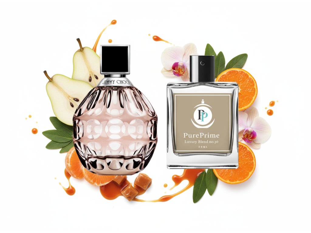 Dámsky parfum No.30 - PurePrime je inšpirovaný ikonickou vôňou Jimmy Choo EDP, ktorá vyžaruje eleganciu, sebadôveru a sofistikovanosť. Vôňa je dokonale vyvážená medzi sladkými, ovocnými a drevitými tónmi.